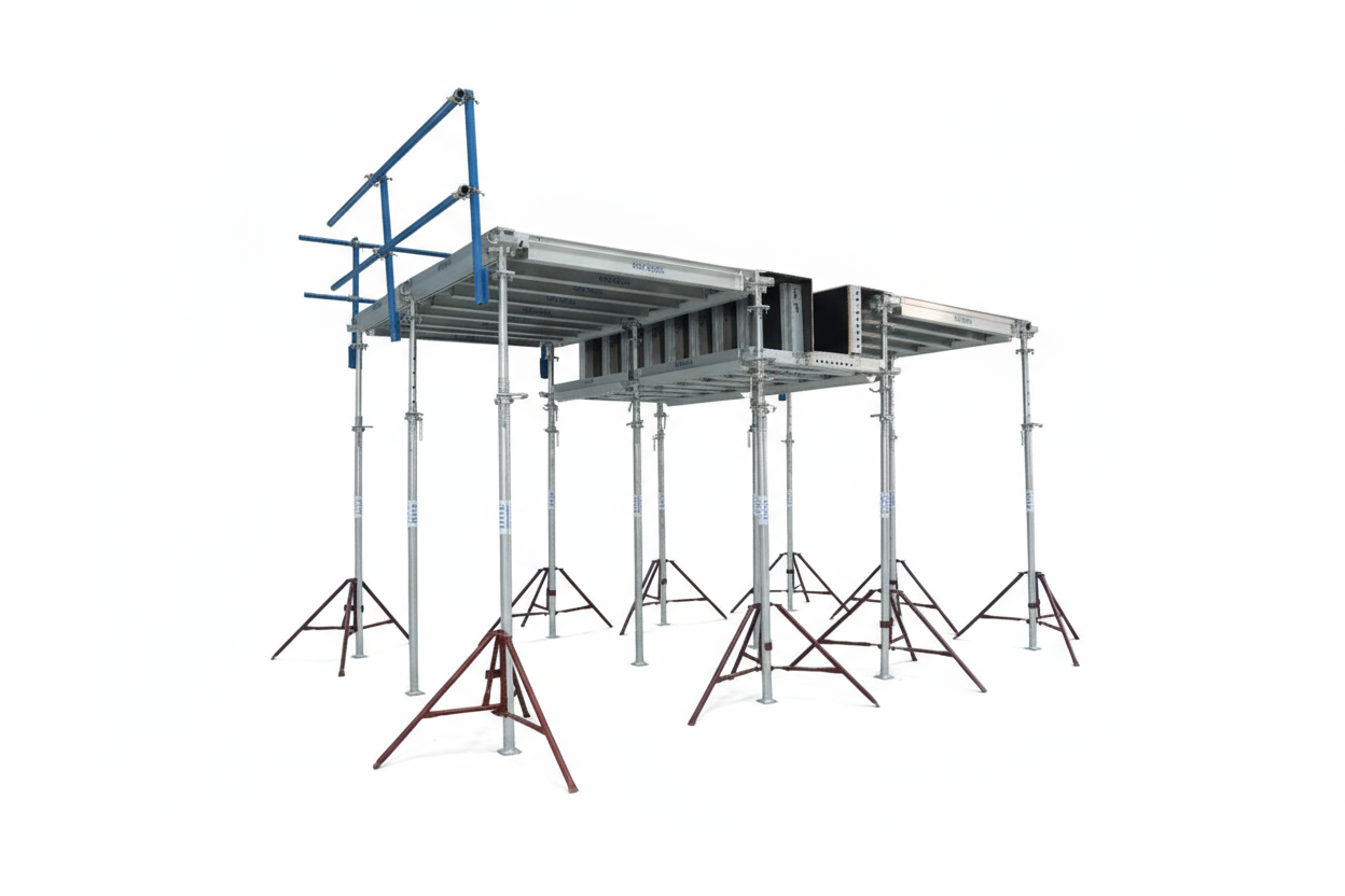 One deck system comes with a unique drop head mechanism, which allows for safe and quick removal of formwork along with Unique Primary & Secondary - Adjustable Aluminium Beam.